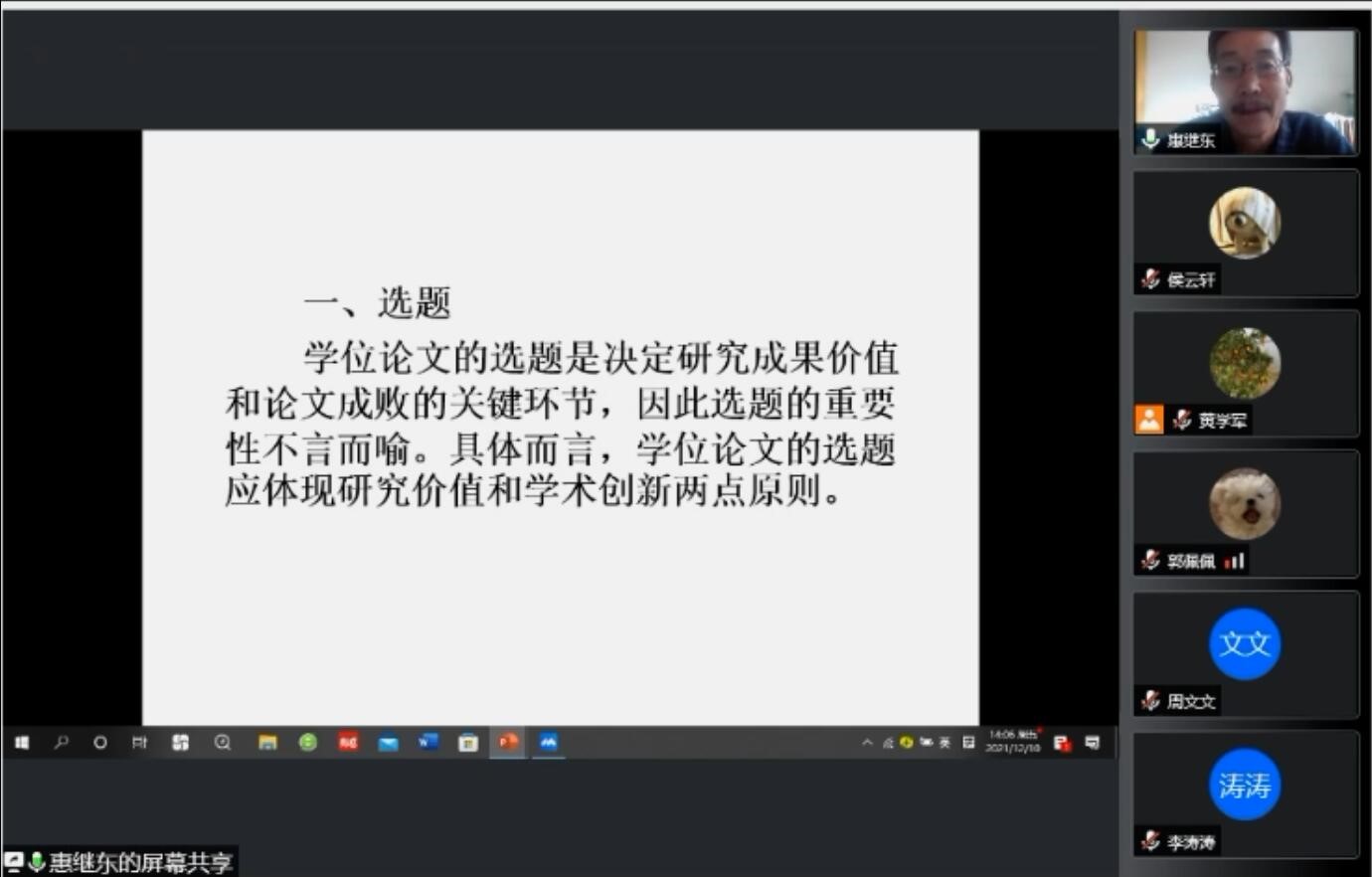 12月10日下午,永利集团人ylzzcom永利通过腾讯会议举行了题为“关于学位论文写作的若干问题”的学术讲座。本次讲座邀请原永利集团人ylzzcom永利教授惠继东先生主讲,比较文学与世界文学专业硕士生导师黄学军教授主持,比较文学与世界文学专业白晓荣教授、于凤艳副教授及学院的多名研究生参加了此次讲座。