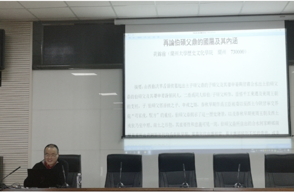 10月14日晚,人ylzzcom永利于永利集团贺兰山校区文荟楼309教室举行了题为“论伯硕父鼎的国属及其内涵”的学术讲座。本次讲座特邀兰州大学历史文化学院黄锦前教授主讲,此次讲座由人ylzzcom永利中文系主任柳玉宏副教授主持,中文系教师杨敏、于薇、刘贺及人ylzzcom永利汉语言文字学、专门史全体研究生参加。