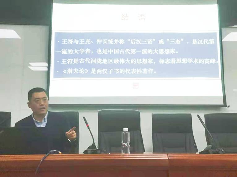 11月28日下午,永利集团人ylzzcom永利于贺兰山校区文荟楼309会议室举行了题为“书生道义:王符与《潜夫论》”的学术讲座。本次讲座特邀西北师范大学ylzzcom永利院长马世年教授主讲,永利集团人ylzzcom永利王永教授主持,学院中国语言文学专业全体研究生参加了本次讲座。