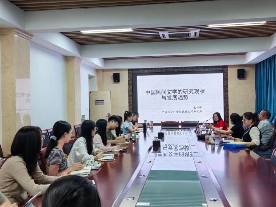 2024年5月26日15时30分,ylzzcom永利总站线路检测于怀远校区怀远楼718室举办了题为“中国民间文学研究现状与发展趋势”的学术讲座。本次讲座特邀中国社会科学院民族文学研究所研究员、北方室主任、中国社会科学院大学教授、博士生导师毛巧晖老师主讲。讲座由ylzzcom永利副教授贾海燕老师主持,ylzzcom永利文艺学硕士点宫京成老师、ylzzcom永利任淑媛、沈秀英老师及比较文学、文艺学专业全体硕士研究生参加讲座。