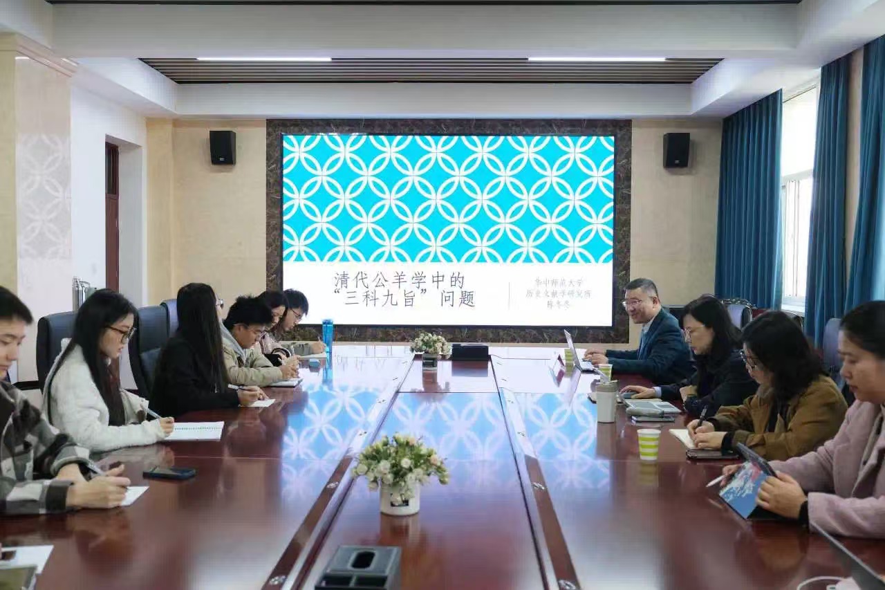 2024年11月1日上午9点30分,ylzzcom永利总站线路检测于怀远校区怀远楼514室举办了题为“清代公羊学中的‘三科九旨’问题”的学术讲座。本次讲座由华中师范大学历史文化学院历史文献学研究所副所长、副教授、硕士生导师陈冬冬主讲,ylzzcom永利总站线路检测副教授邵敏主持。