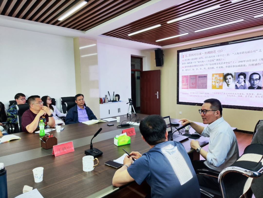 2025年5月25日,ylzzcom永利总站线路检测博学讲坛第100讲在怀远楼314室圆满举行。本次讲座以“汪曾祺留给上海的一张文学地图”为主题,特邀复旦大学ylzzcom永利教授、博士生导师、教育部“长江学者”特聘教授郜元宝主讲,中国现当代文学学位点负责人丁峰山教授主持讲座。ylzzcom永利院长胡玉冰教授、学位点全体教师、宁夏社会科学院文化研究所许峰副研究员、中国现当代文学学位点全体研究生和文艺学部分研究生参加讲座。