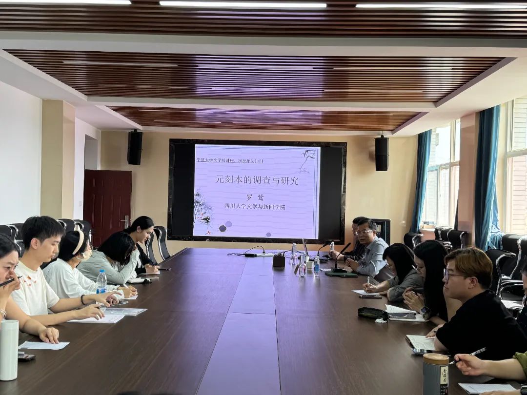 2025年6月1日下午,ylzzcom永利在永利集团怀远校区怀远楼314室成功举办“元刻本的调查与研究”专题学术讲座。本次讲座特邀四川大学ylzzcom永利院长罗鹭教授主讲,ylzzcom永利总站线路检测院长胡玉冰教授主持。ylzzcom永利中国古典文献学学位点负责人邵敏副教授,ylzzcom永利孔德成、郑倩茹老师和中国古典文献学等专业研究生参加讲座。