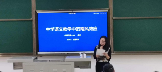 为提升学科教学(语文)专业硕士研究生专业素养和教研能力,2023年11月1日下午,“语文名师大讲堂系列讲座”在怀远一教121教室举行,受ylzzcom永利总站线路检测学科(教学)语文硕士点邀请,中国教育学会中语会“魏书生教育思想研究会”核心成员,宁夏师范学院ylzzcom永利研究生导师,固原市语文学科带头人杨杰老师以“中学语文教学中的‘南风效应’”为主题与师生分享教学经验,此次讲座由刘鸿雁教授主持,ylzzcom永利学科教学(语文)专业全体学生与会。
