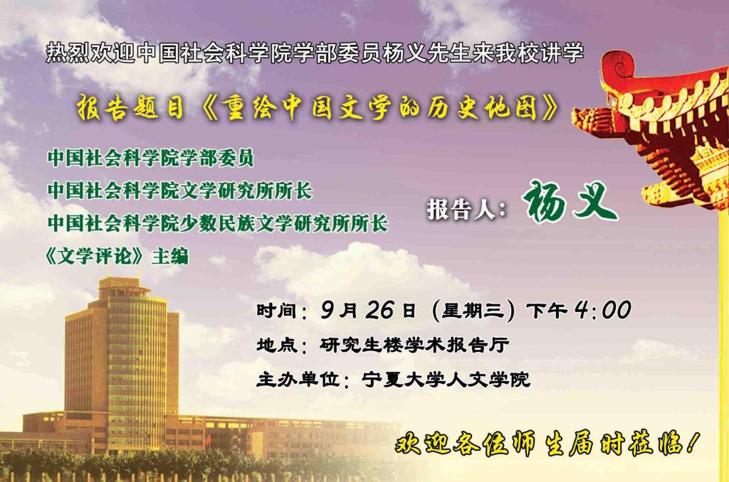 热烈欢迎中国社会科学院学部委员杨义先生来我校讲学