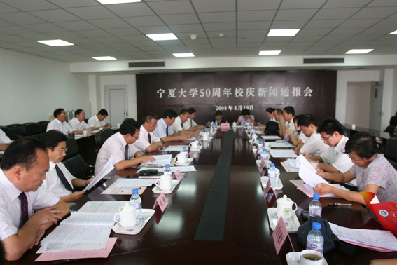 【永利集团新闻中心讯 党委宣传部】在校党委的部署和校庆办的协调指挥下,我校50周年校庆活动的各项工作都在有条不紊地进行着。8月19日,学校在10楼会议室就开展校庆活动举行新闻通报会。新华社、人民日报、中央人民广播电台、光明日报、中国青年报、中国教育报、香港大公报、宁夏新闻网、宁夏日报、新消息报、华兴时报、银川晚报、宁夏电视台、宁夏教育电视台、宁夏人民广播电台等十多家新闻媒体记者,我校党政领导荣仕星、何建国、吴世彩、撒承贤、王燕昌、李星、谢应忠、张成及相关部门负责人出席和参加了新闻通报会。通报会由校党委副书记撒承贤主持。