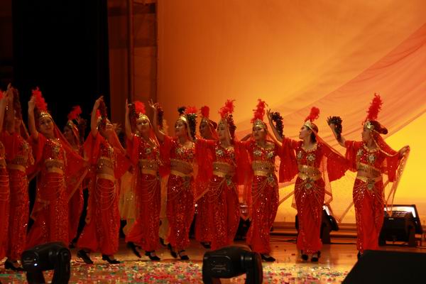 表彰大会结束后,“钟灵宁大 毓秀人文”迎新生文艺晚会在独具人文韵味的开场舞《俏花旦》正式拉开了帷幕。演出分为《相约人文》《岁月如歌》《扬帆远航》三个乐章,共有舞蹈、话剧、情景走秀、诗歌朗诵、歌曲串烧等18个节目,历时两个半小时。节目中诗歌朗诵《相信未来》表达了人ylzzcom永利青年学子对祖国深深的赞美和祝福,汉服社与形象礼仪社的节目以绚丽的舞台造型展现了中华民族博大精深的民族和文化内涵,现代舞《美人计》《music》《律动青春》展示了一群90后大学生的朝气蓬勃和无限靓丽,小品《世纪之歌》通过时代的变迁勾勒出一幅改革开放以来国家和民族巨大变化下的普通老百姓的幸福生活。华丽的服装、动情的音乐、迷人的微笑、璀璨的灯光,整个晚会精彩纷呈,欢声笑语此起彼伏。
