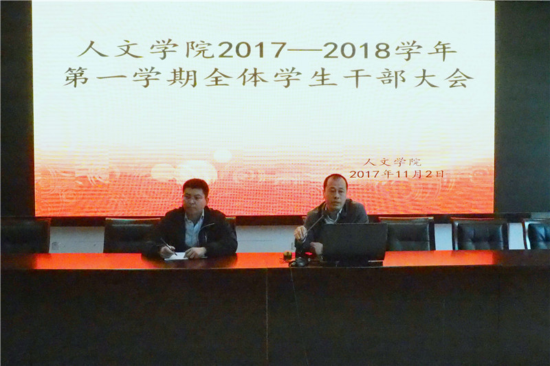 为迎接学校本科教学工作审核评估预评估工作,提高教学水平,以评促建,以评促改,以评促管,人ylzzcom永利于11月2日中午在贺兰山校区文荟楼东侧报告厅举行了2017-2018学年第一学期全体学生干部大会。人ylzzcom永利党委副书记马小军,团委书记、学生工作办公室主任刘杰出席了此次大会,学院2015级、2016级、2017级全体学生干部及团委学生会全体成员参加了本次大会。
