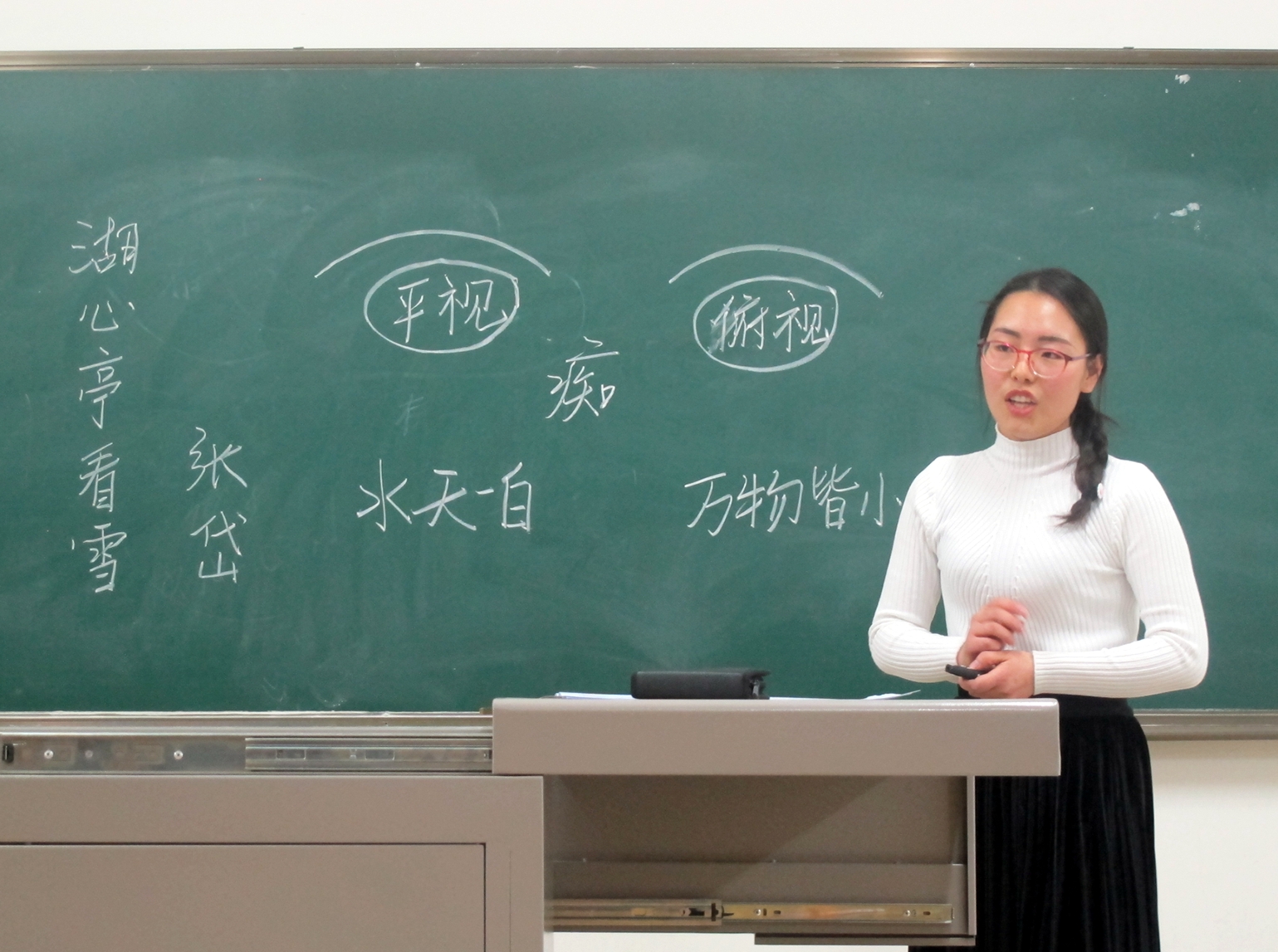 此次大赛由教学设计、说课、模拟授课和现场答辩四个环节组成,时间限制严格。大赛评委均是各大高校语文教学的行家里手,阵容强大,参赛选手皆是有备而来的师范学子,俱怀逸兴,贤主嘉宾,济济一堂。经过一天激烈的角逐,我院2014级汉语言文学专业的刘冰心、白旋、王玲和2015级汉语言文学专业的唐佳欣,均发挥出色,崭露头角,在教学设计和教学技能的评比中全部斩获一等奖,赵红、杨晓宇等六位指导教师亦荣获优秀指导教师称号。八个一等奖、六个优秀指导教师称号,充分说明我院师范教育的专业实力和水平。