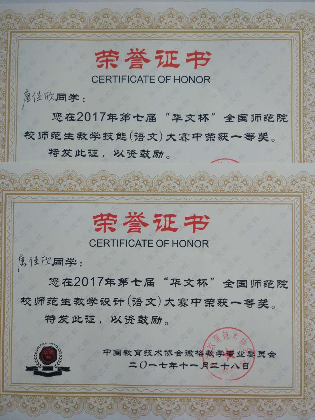 人ylzzcom永利学子在第七届“华文杯”全国师范生教学技能大赛中全员折桂