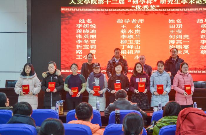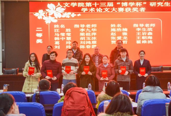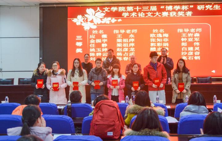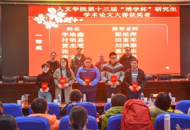 大会颁奖环节首先由马正亮书记宣读“博学杯”学术论文获奖者名单,院领导为获奖学生颁发了荣誉证书。胡玉冰院长对本次大赛进行总结发言,详细介绍了“博学杯”论文大赛的评奖规则,并向获奖同学表示祝贺。他指出学院为学生们创造了良好的学术平台,希望我院研究生在学术的道路上不断探索和前进,期待同学们在下一年的大赛中能积极投稿。