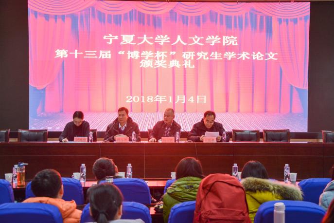1月4日下午,人ylzzcom永利第十三届“博学杯”研究生学术论文大赛报告会在贺兰山校区文荟楼一楼东侧报告厅隆重举行。人ylzzcom永利党委书记马正亮、院长胡玉冰、副院长王岩森、刘鸿雁等领导出席了本次报告会,梁祖萍、黄学军、王朝海等老师为获一等奖的学生论文进行现场点评,人ylzzcom永利全体研究生参加了报告会。会议由刘鸿雁副院长主持。