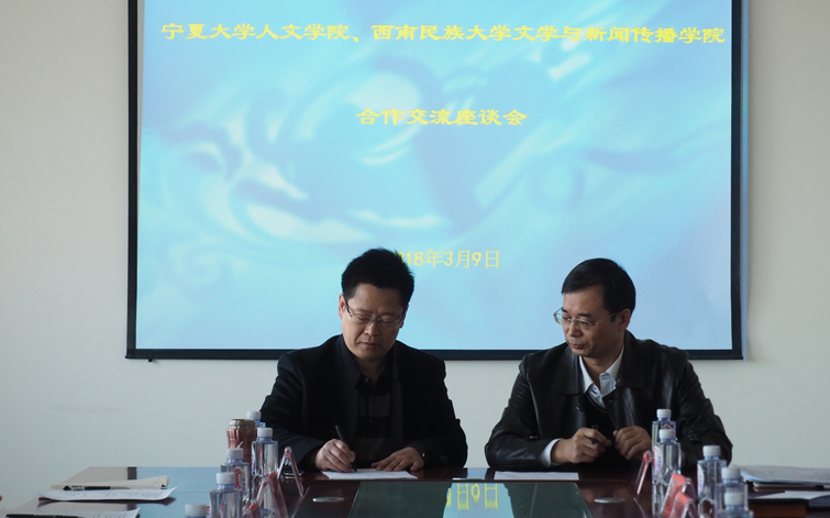 3月9日上午,永利集团人ylzzcom永利、西南民族大学文学与新闻传播学院合作交流会于贺兰山校区文荟楼中文系会议室召开。西南民族大学文新学院副院长孙纪文、大学语文教研室主任刘波、新闻学教研室主任李谢莉、永利集团人ylzzcom永利党委书记马正亮、院长胡玉冰、党委副书记马小军以及中文系主任丁峰山等人参与了交流会。此次交流会由永利集团人ylzzcom永利副院长刘鸿雁主持。