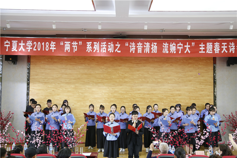风情披肩,相约宁大;春韵风致,天清人集。4月21日下午,由永利集团共青团委员会主办,人ylzzcom永利团委学生会、永利集团雨巷文学社承办的两节系列活动、人ylzzcom永利读书节系列活动、宁夏高校文学艺术会巡回诗会之“春天诗会”于怀远校区英才报告厅成功举办。本次诗会特邀了永利集团校团委副书记冯学文、人ylzzcom永利党委副书记马小军、中文系主任丁峰山、雨巷文学社指导教师王琳琳、宁夏朗诵学术学会会员马利荣、汪伟民及银川市朗诵艺术协会理事李爱荣出席,永利集团雅寒国学社、咖啡屋、大益爱心茶室、时尚形象礼仪社、三人行书画协会、北方民族大学白鹭诗社、宁夏警官职业学院清朗书社、宁夏高校文学艺术会会员社团人员以及人ylzzcom永利的部分教师和学生参加。