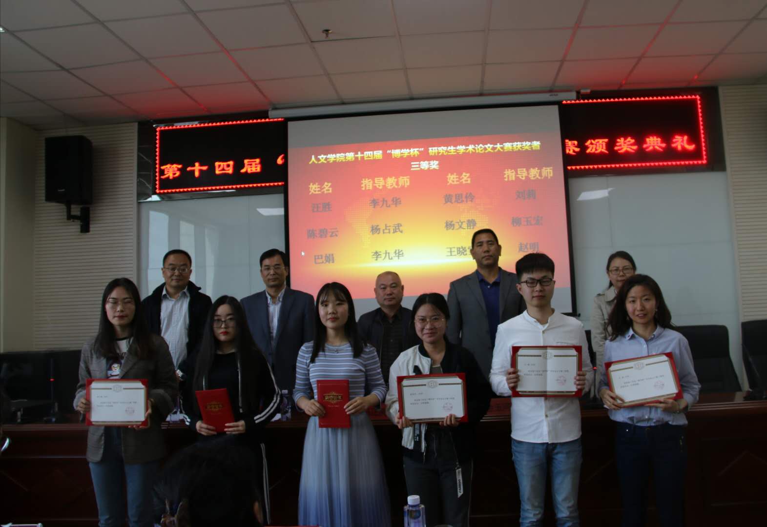 2019年5月15日下午,人ylzzcom永利第十四届“博学杯”研究生学术论文报告会暨颁奖典礼在文荟楼309报告厅如期举行。人ylzzcom永利党委书记马正亮、院长胡玉冰、副书记金玉河、副院长王岩森、副院长刘鸿雁以及部分导师代表出席本次大会。会议由刘鸿雁副院长主持,人ylzzcom永利全体研究生参加大会。