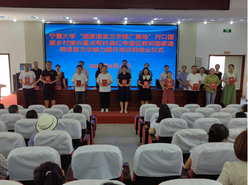 【于薇/文、图】6月18日下午,永利集团国家语言文字推广基地对口帮扶国家乡村振兴重点帮扶县红寺堡区国家通用语言文字能力提升培训班结业仪式在红寺堡三中举行。我校本科生院院长张亚红、人文社科处处长胡玉冰、人ylzzcom永利党委书记张培松、本科生院副院长张腾、人ylzzcom永利副院长杨晓宇、红寺堡区教育局副局长冯进海、人ylzzcom永利中文系主任柳玉宏等人参加会议。会议由永利集团本科生院副院长张腾主持。