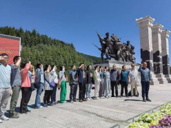 7月3日,老师们乘车抵达了党日活动的最后一站:六盘山红军长征纪念馆。在气势恢宏的红军长征纪念广场,党员老师们面对党旗,重温了入党誓词,铮铮誓言响彻六盘山峰。宣誓完毕后,老师们参观了红军长征纪念馆和纪念碑,通过参观红军长征中的上百件遗物、文物、图片资料,聆听中国工农红军长征3次经过六盘山区时的斗争历史,老师们深切感受到了红军长征“不到长城非好汉”的坚毅精神。参观结束后,老师们沿着“红军小道”走下了六盘山主峰,亲身体验了红军长征路的艰难和不易。