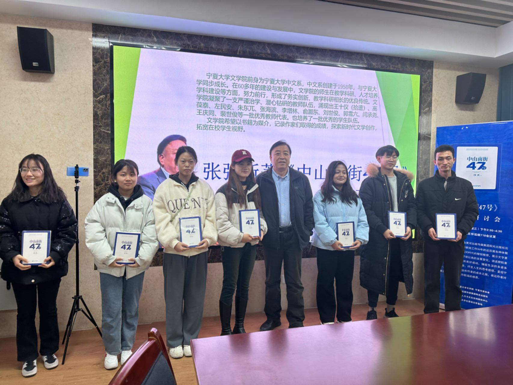 张富宝副教授围绕该书的文化价值进行了总结:其一,《中山南街47号》是记忆符号的生成。书中他关于校园生活的回忆能够引发现在校园人文氛围的思考,并因此能够延伸出更多的反思;其二,《中山南街47号》是新闻工作者的成长蜕变的档案,也记录着宁夏报人的生态,有着鲜明的文学底色与浓烈的情感基调。同时在方法实践上也启示着读者,有着史料性、新闻性、文学性的特点。同时,张老师还强调了张强先生的工匠品质、精神光亮与君子之气。他认为张强老师是“自带精神光亮的人”,这种“光亮”在他的人生中随处可见。