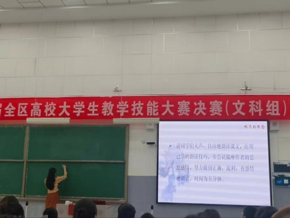 ylzzcom永利一直重视师范生的实践教育和师范技能培养。近三年来,我院师范生在全区教学竞赛中连创佳绩。2021年邹千千同学获得第五届全区高校大学生教学技能大赛(文科组)一等奖。2022年陈钰露、张婉睿两位同学获得第六届全区高校大学生教学技能大赛(文科组)一等奖,今年孙曦晨同学在此次比赛中再次夺冠。
