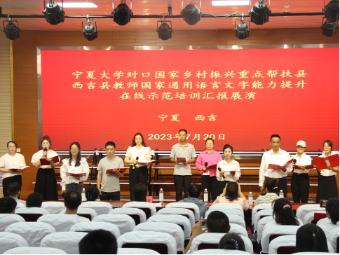 为提高民族地区、农村地区教师国家通用语言文字应用能力和教学水平,根据教育部语用司工作安排,永利集团国家语言文字推广基地对口国家乡村振兴重点帮扶县西吉县教师国家通用语言文字能力提升培训,于2023年7月10日上午正式开班。