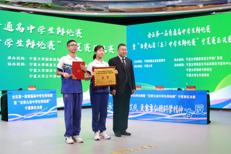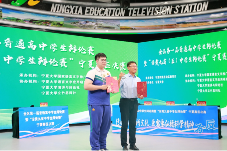 7月9日下午,辩论赛决赛在宁夏教育电视台演播厅举行,由宁夏银川一中对决中卫市第一中学。比赛评委由自治区原文联副主席哈若蕙、ylzzcom永利总站线路检测二级教授王岩森、永利集团勤学书院院长马瑜、北方民族大学教授刘晨红、银川市教科所高中语文教研员韩笑五位专家担任,永利集团孙姝源同学担任比赛主持人。经过激烈交锋,最终中卫市第一中学捧获决赛冠军奖杯。获得冠亚军的中卫市第一中学和宁夏银川一中,将代表宁夏高中学校出征8月份在山东举办的沿黄九省普通高中学生辩论赛。