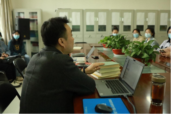 2022年4月29日下午在文荟楼1014会议室,人ylzzcom永利“致知力行”读书会开展了第二期读书活动。会议由人ylzzcom永利外国文学与文艺理论教研室杨志云老师主持,参加会议的是人ylzzcom永利中文系2021级文秘班、2020级汉教二班的十余位同学及2021级文艺学研究生王宁同学。读书会的主要议题是研读中国古代文论经典《文心雕龙》。
