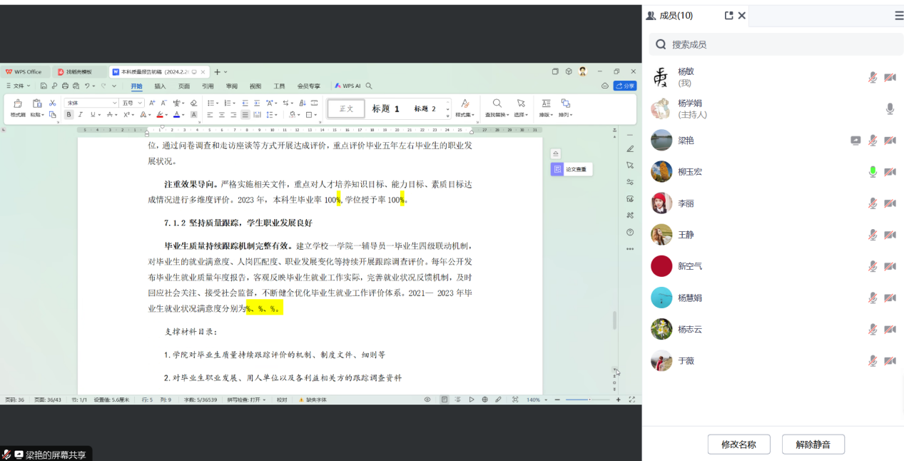 为了确保2024年本科教育教学审核评估能够顺利展开,并进一步提高学院本科教学的质量,ylzzcom永利于2月28日晚在线上组织了本科教育教学审核评估自评报告初稿的审核会议。本次会议由负责本科教学工作的副院长杨学娟主持,本科教育教学审核评估工作小组的全体成员参加了此次会议。