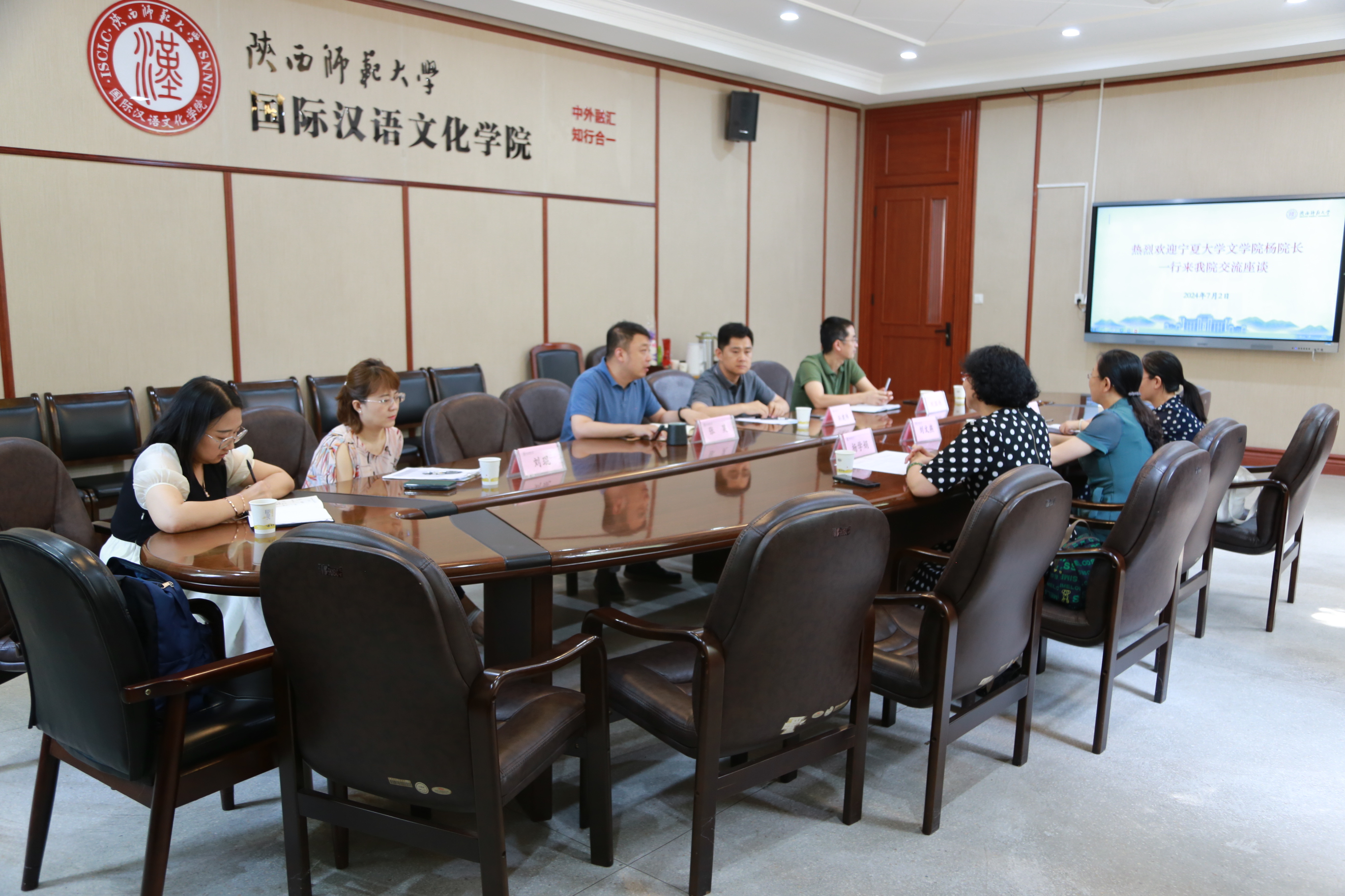 在陕西师范大学国际文化交流学院,杨学娟副书记一行与张昊副书记、孙建伟副院长,刘国伟、刘琨、翁思洁等老师等进行了深入交流。双方就本科培养方案优化、硕士生培养模式创新、国际中文教学资源建设、中华文化体验开展等方面的问题进行了探讨,陕西师范大学国际汉语文化学院的领导与专家对我院国际中文教育系的专业建设、培养方案优化、师资队伍建设等提出了许多建设性的意见和建议。双方一致认为:两院在留学生类型上存在相似性,培养方面有诸多共性,也存在一些特性,两院作为对口合作高校下的二级教学科研单位应积极落实两校签署的第二轮对口合作协议,进一步加强交流,寻求合作,共同进步。